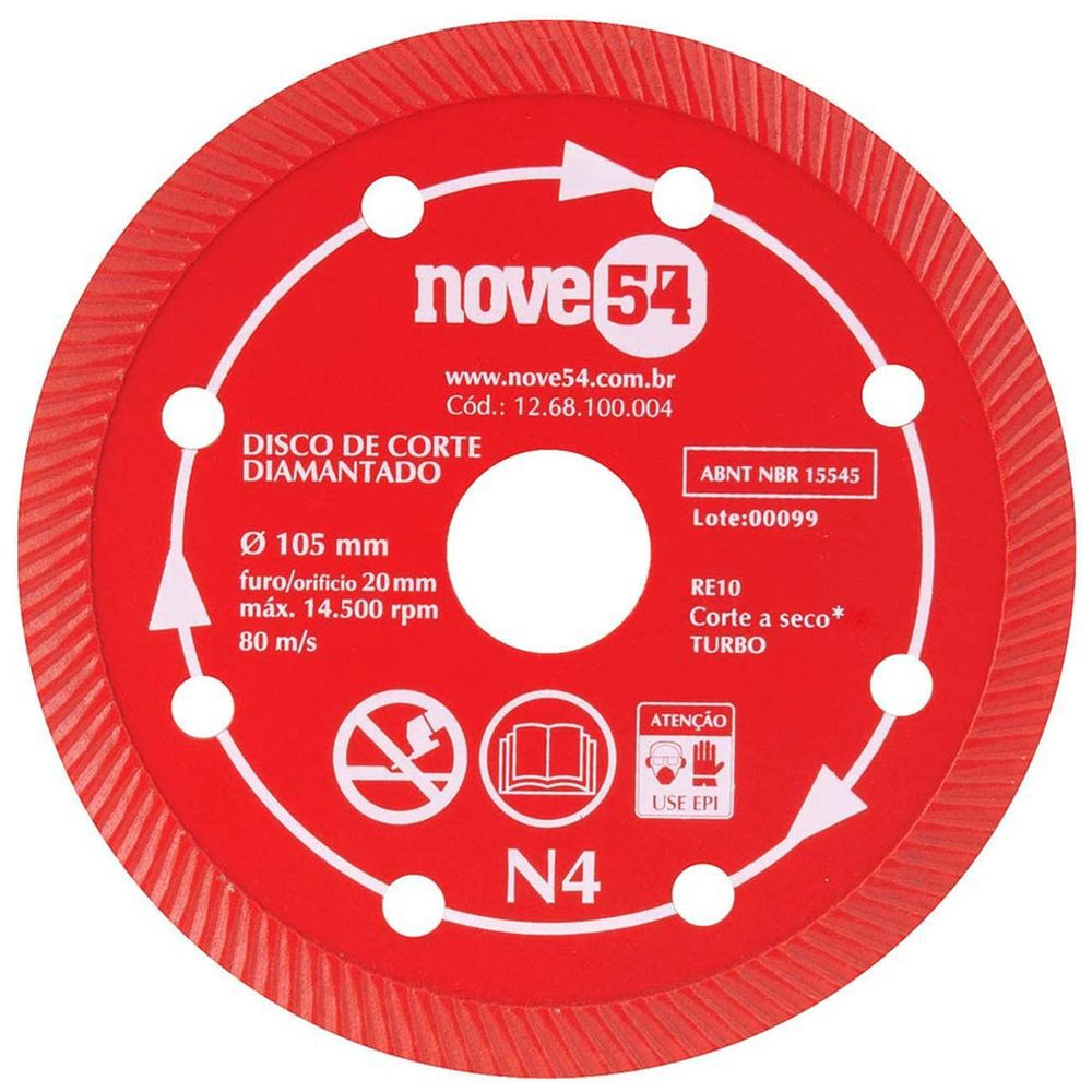 Indicado para cortar cerâmica. Pode ser utilizado para cortar concreto, pedras e tijolos.